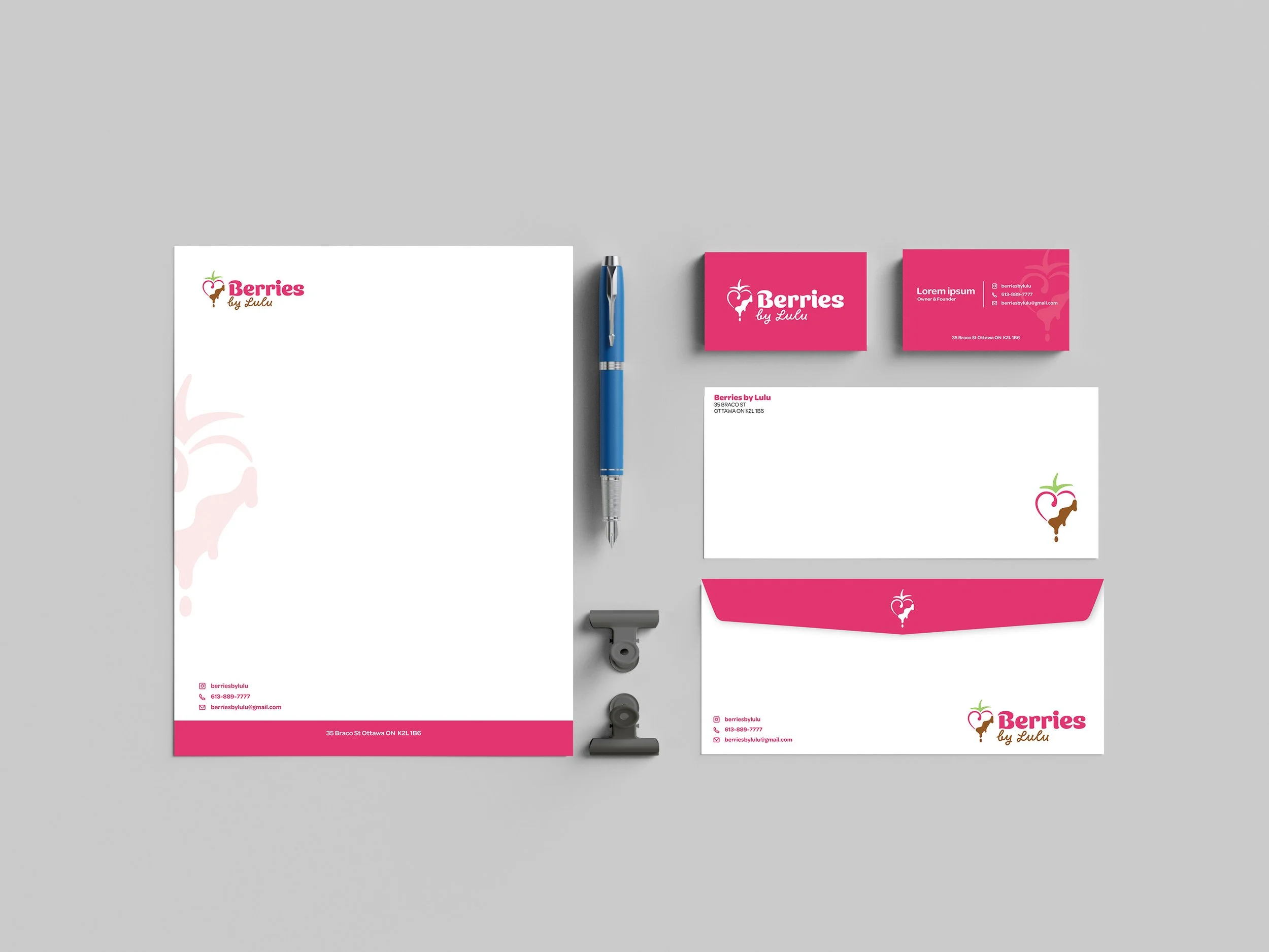 I developed a clean and clear new logo for Berries by Lulu. The colours and simple design aligns better with the companies product and tone of voice. With the new logo I also created stationery including Letterhead, Business Cards, and Mailing Envelopes. Overall, the redesign creates a more polished, professional, and adaptable brand identity.